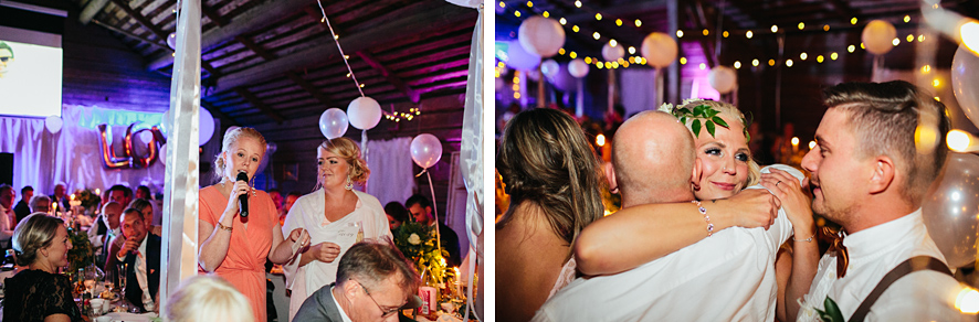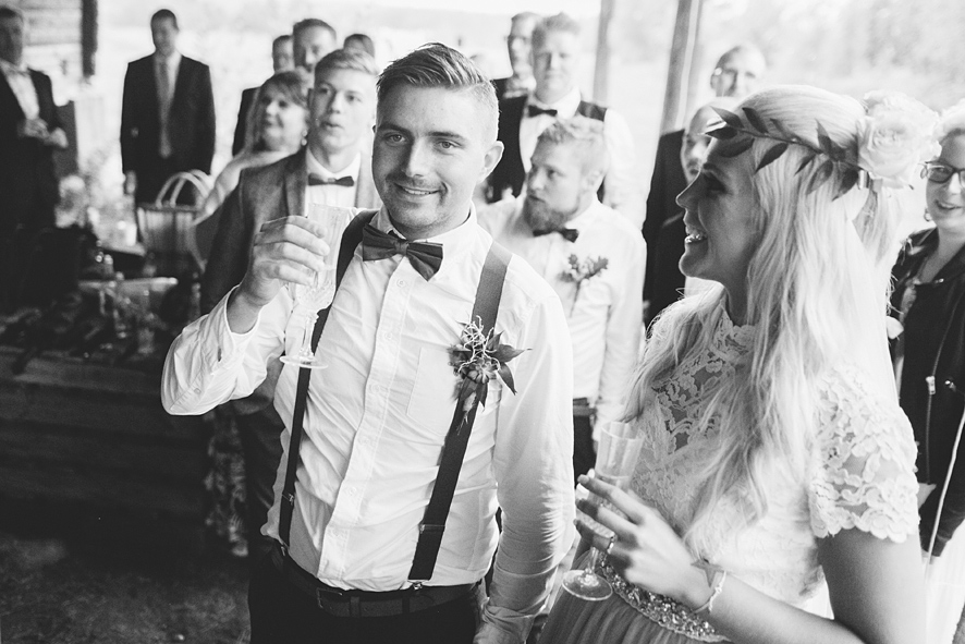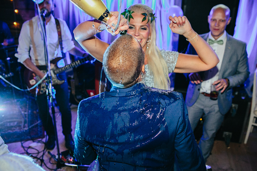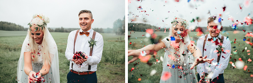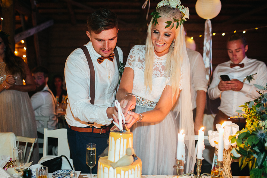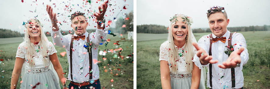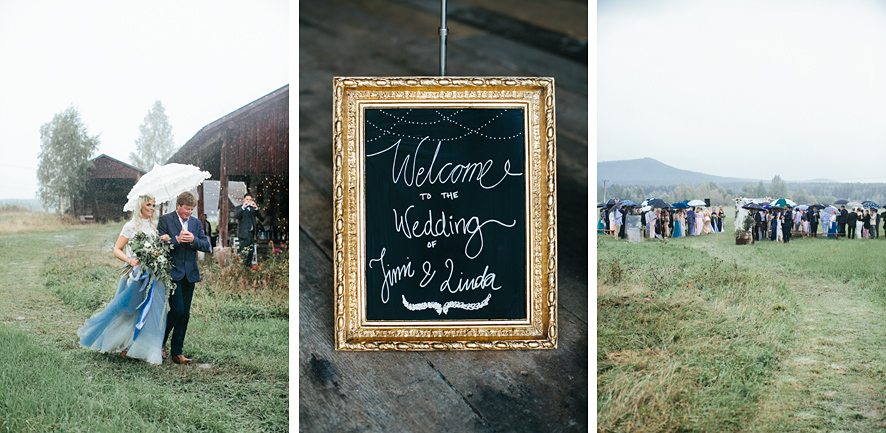 Bröllop i lada, rökbomber, glitter, ösregn, kalhygge, allt som är motsatsen till lagom & så två vilda hjärtan på det. Jimi & Linda, två vilda hjärtan som inte är lagom, inte någonstans. Precis så som jag vill ha det. Att Linda dessutom råkar vara en fantastisk bröllopsfotograf gjorde nog inte bröllopet mindre välplanerat. För min del var det lite som att rullas in mig på en solsäng, jag kunde i princip ligga ner och fotografera gobitarna från den gigantiska buffén av bröllopsdetaljer.